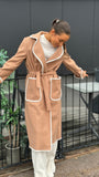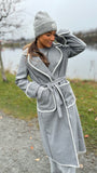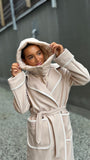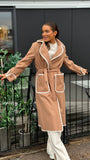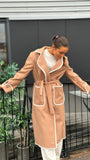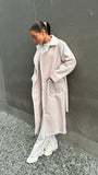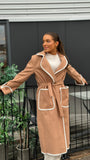 Supertrendy kåpe i 65% ull, hold deg varm på kade dager. Belte i livet og krage. De hvite stikningene gjør kåpen komplett.